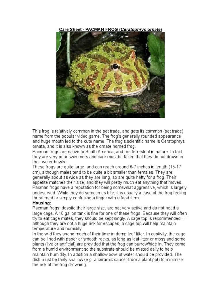 Pacman Frog Care Sheet - Pacman frogs, also known as south american horned frogs, are a. The common name “pacman frog” describes 8 species within the ceratophrys genus. Web welcome to the ultimate care guide for pet pacman frogs! Web pacman frog care sheet & pet guide. Web pacman frogs aren't as active as their arcade namesake, but they do have special requirements as pets.